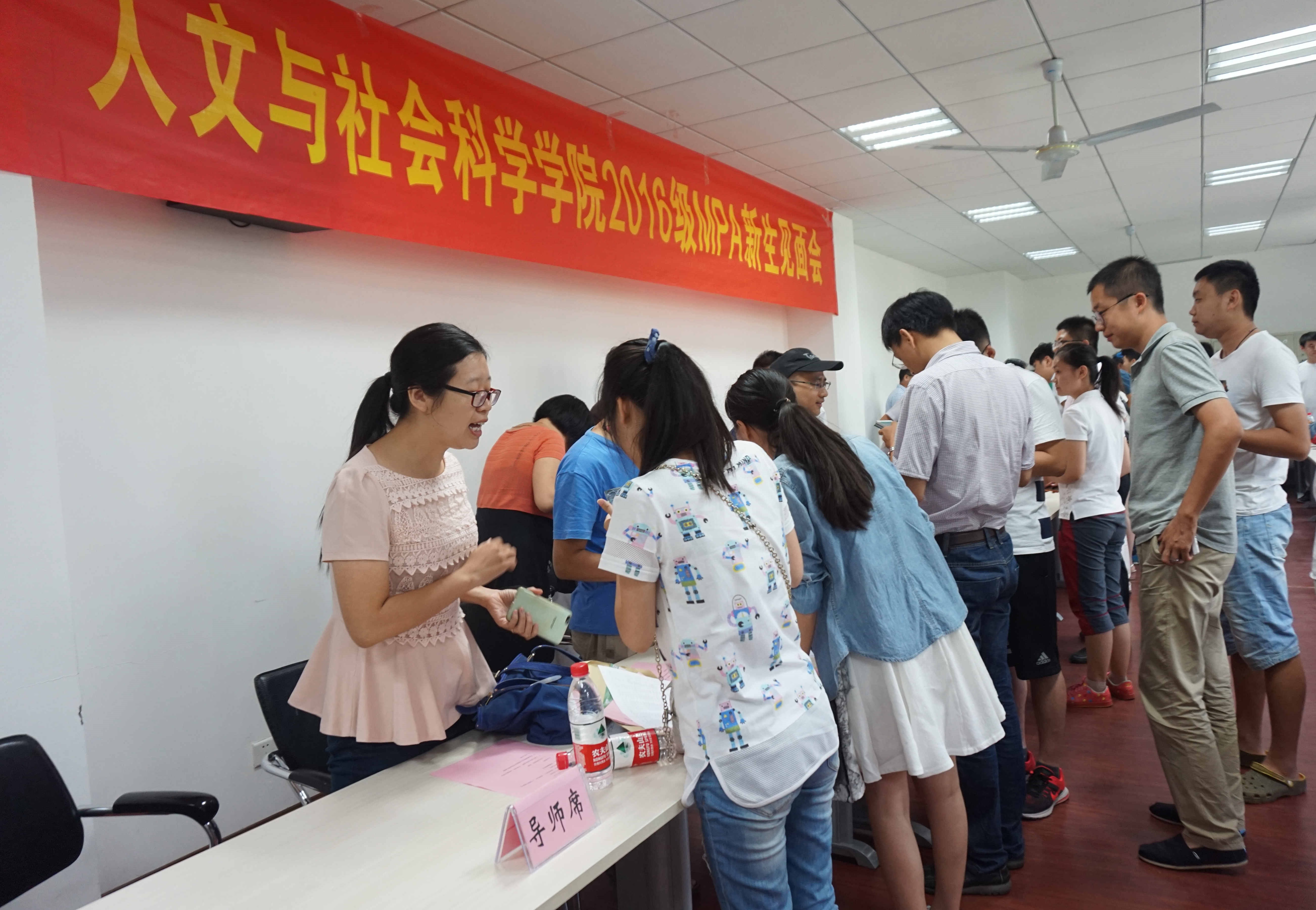 为增强新生对大学生活的了解,帮助新生尽快融入人文学院大家庭,9月2日中午13:00点,人文学院2016级MPA新生见面会在人文学院楼210教室举行。院长王建文、副院长李栗燕、副院长郑易平、16级MPA班主任尹春苹,20余名新生导师以及全体16级MPA新生参加了见面会。