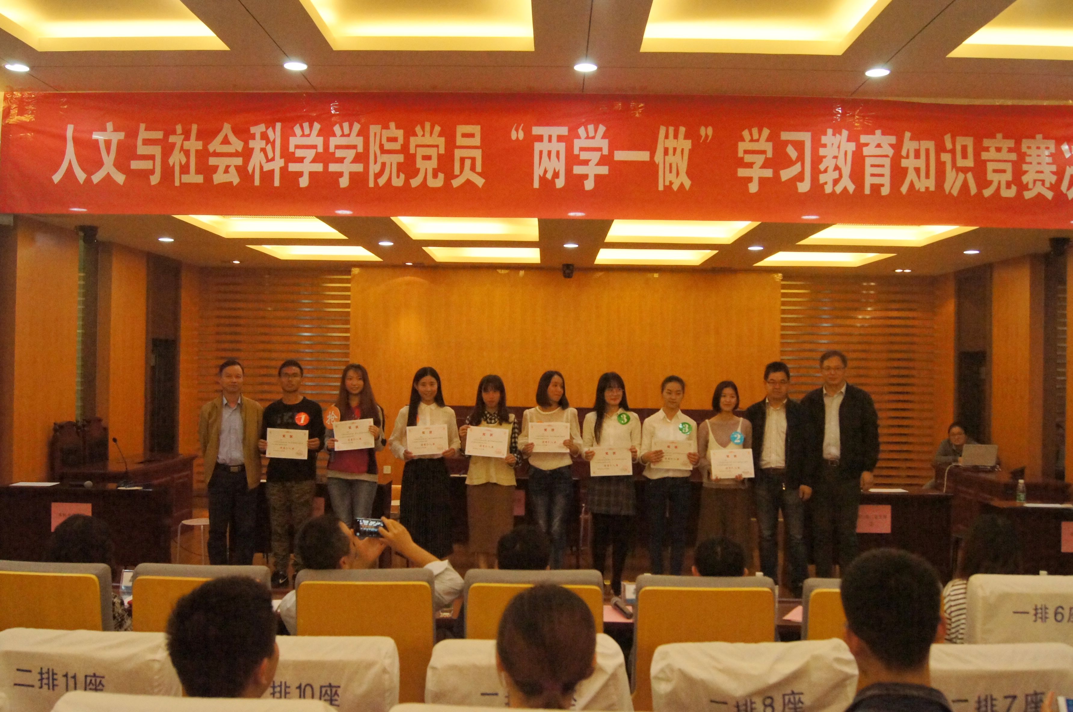 10月18日下午四点,成人漫画 、马克思主义学院党员“两学一做”学习教育知识竞赛决赛在人文学院模拟法庭举行。校党委组织部副部长高小泽、校党委宣传部副部长孔令华、校纪委办公室主任刘红旗、校团委副书记管祎、成人漫画 党委书记张启钱、院长王建文、马克思主义学院副院长缪国龙、学院学生工作负责人尹春苹等出席活动,学院教工党员、全体学生党员及入党积极分子参加了此次学习实践活动。