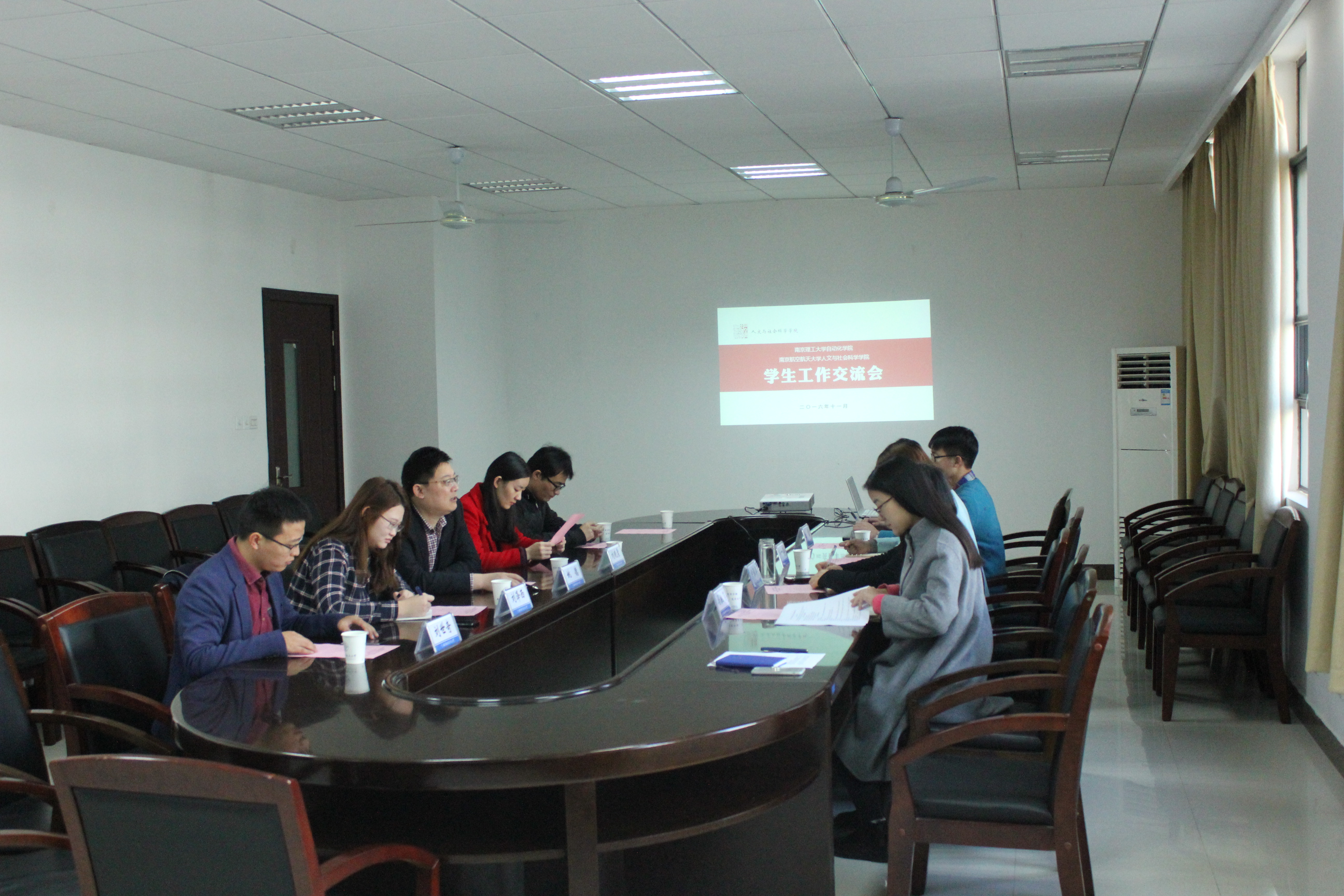 会上,双方就学院管理机构设置、学院部门分工、学生工作日常等基本情况进行了沟通。围绕如何进行学生骨干的选拔、考核与培养,如何推进典型育人、实践育人的具体措施,以及在新媒体背景下如何构建学生工作宣传体系等主题,双方进行了深入探讨和交流。尹春苹老师对我校素质能力培养方案进行了详细解读,卢一亭介绍了学院团委学生会的组织管理,陈雷就学院品牌活动《文科技能训练营》进行了介绍,王宇婷则向各位老师汇报了学院新成立的成人漫画目前的情况及工作构想。南理工自动化学院姚德书记等一行听后,对学院近年来的团学宣传工作进行了肯定,并交流了目前的困惑与问题,特别对我校人才培养体系给予了极大关注。最后双方针对人才体系构建等相关问题深入交换了意见。
