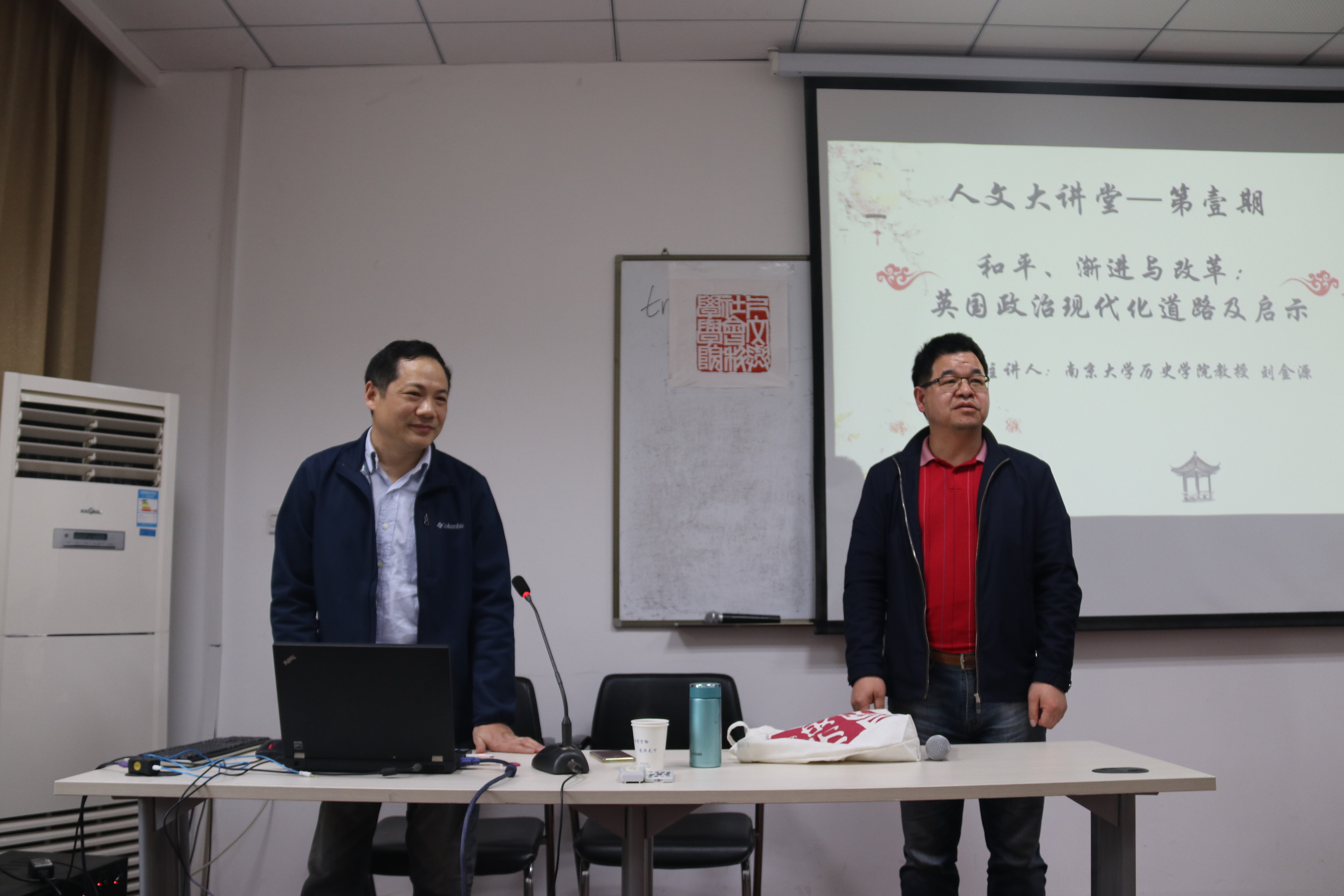 2018年3月30日下午成人漫画 举办首期人文大讲堂,特别邀请南京大学历史学院博导、美国哥伦比亚大学、英国杜伦大学访问学者刘金源教授作为首讲嘉宾,以“和平、渐进与改革:英国政治现代化道路及启示”为题,为师生带来一场精彩的人文讲座。讲座由成人漫画 长王建文主持,来自各学院的同学一同聆听了讲座。