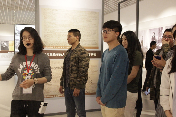 本次展览分为“马克思主义哲学的诞生”“社会主义从空想到科学的发展”“剩余价值的发现”“马克思晚年的生活和探索”“马克思主义在传播中发展”五个板块,通过一批实物与档案文献立体化呈现了马克思主义形成发展至今风云激荡的200年历程。其中,一份马克思原始手稿引起了老师和同学们的广泛关注。该手稿为《布鲁塞尔笔记》中的第四本笔记本,原有30张纸60页,展出的有27张纸54页,其中49页写有字迹。该手稿的纸张和笔迹经过专家鉴定,被认定为目前中国收藏的唯一一份相对完整的马克思原始手稿。