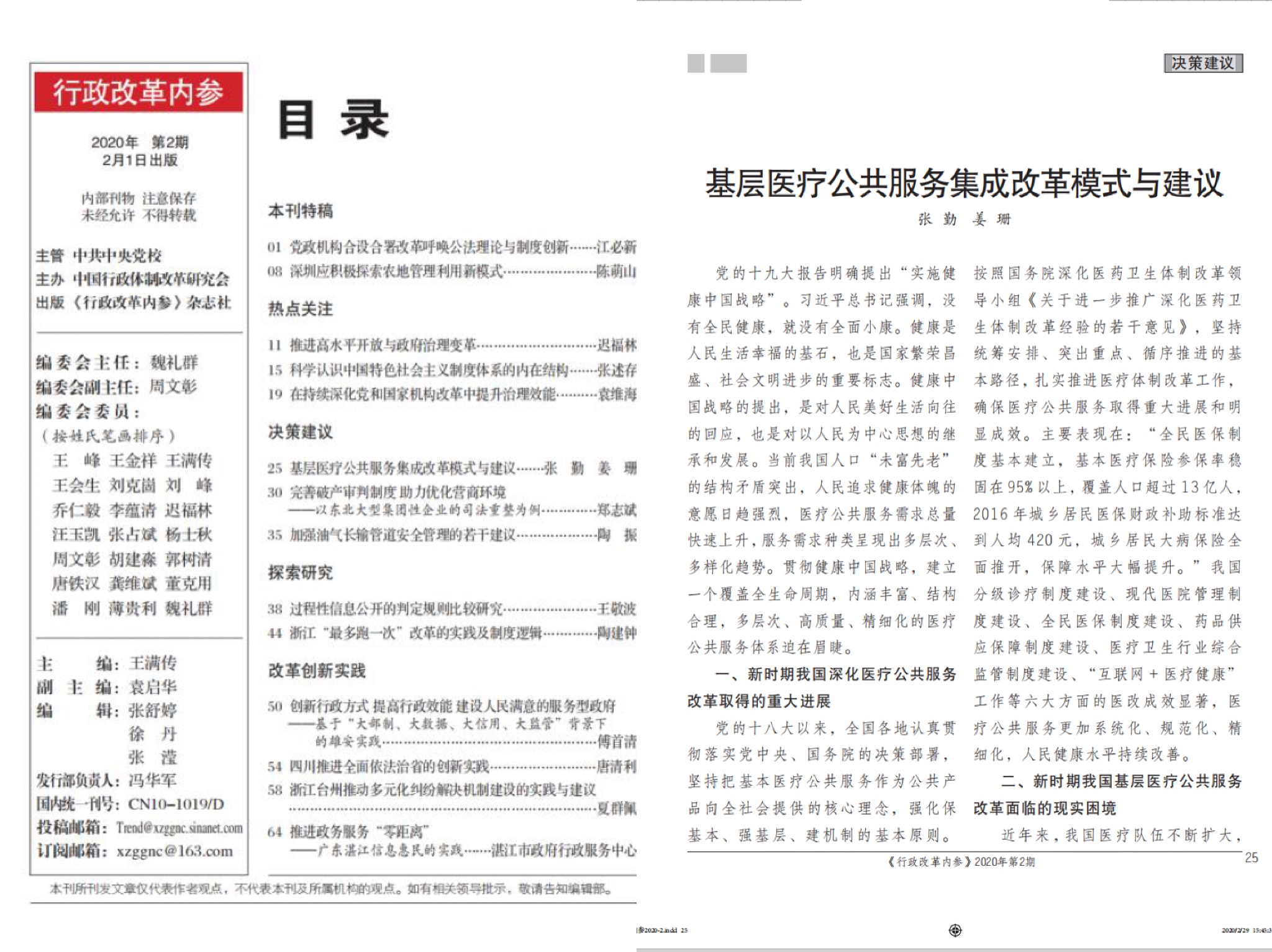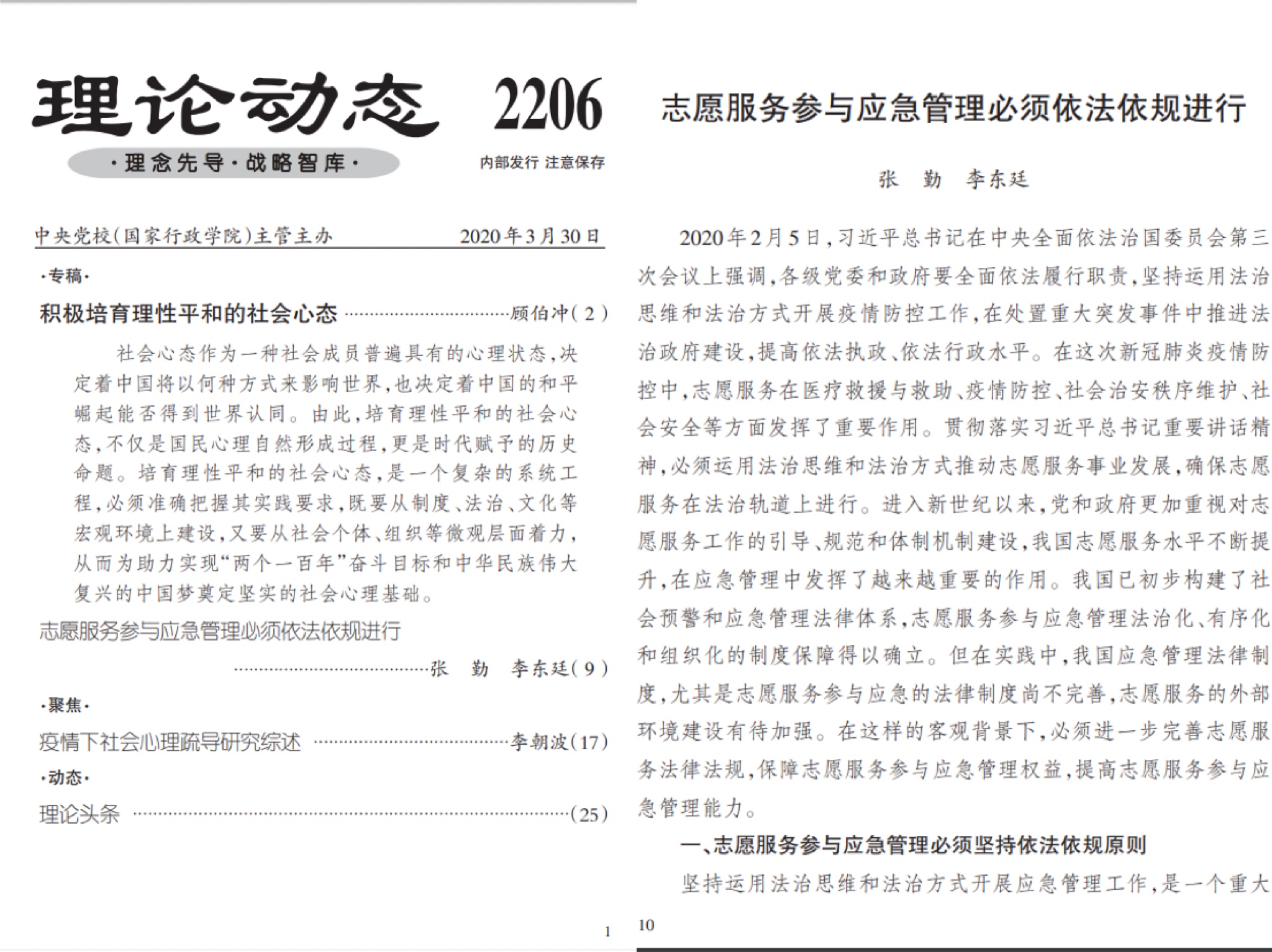 我院师生在全力落实上级部门及学校抗疫部署的同时,积极利用“宅”家时间,以问题为导向,加强学术研究与探讨,坚持居家研学不懈怠,利用专业优势积极为抗疫献言献策,并喜获成效。在2月1日与3月30日的《行政改革内参》与《理论动态》上,分别刊发了成人漫画 张勤教授与学生共同研究撰写的两篇文章《基层医疗公共服务集成改革模式与建议》、《志愿服务参与应急管理必须依法依规进行》。