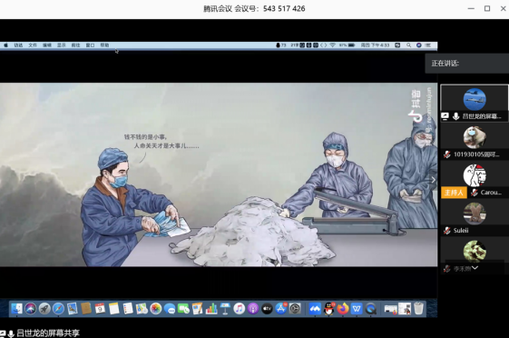 院研会结合目前新冠肺炎疫情防控要求,组织了关于安全教育日的线上主题研讨会,帮助学生了解正确的防疫知识,并结合专业知识,以腾讯会议的形式展开了热议。讨论会围绕两个聚焦主题:“全民国家安全教育日安全教育活动”、“国家疫情防控中公共管理问题分析。”同学们通过政府公共管理中的细节管控、家乡抗疫事迹与抗疫工作等话题纷纷踊跃发言。