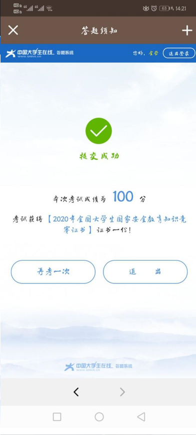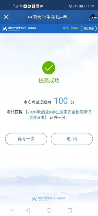活动开展期间、各年级、各班积极组织同学们参与教育部思政司指导中国大学生在线组织开展“2020年全国大学生国家安全教育知识竞赛”,通过网络答题方式普及国家安全教育知识。各班同学积极参与答题活动,很多同学取得了优异成绩。此次答题活动帮助学生们在答题中学以致用,牢固掌握国家安全相关法律法规知识,深化国家安全素养。