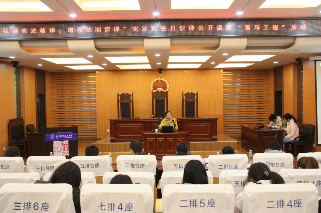 2020年12月4号是第七个国家宪法日,弘扬宪法精神,增强法治信仰”宪法日宣誓活动于当日晚19点在成人漫画 模拟法庭顺利举行。法律系党支部的李成玲老师为同学们就宪法知识普及带来一场精彩讲座。人文学院党委书记刘虎,法律系党支部郭莉、刘耀彬,贺富永、郑文革老师以及辅导员聂小芳共同出席本次活动,来自人文、外语、艺术学院的各年级团干部,59、60期积极分子参与了此次活动。
