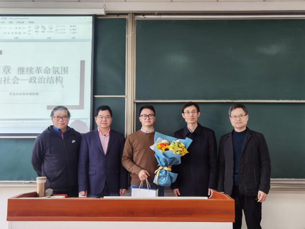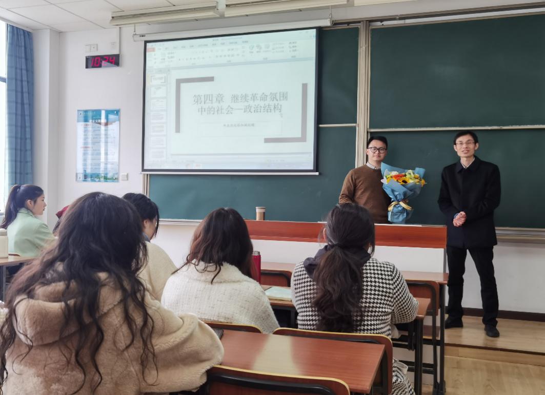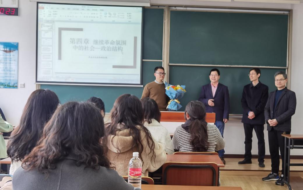3月15日上午,成人漫画 新教师“第一堂课”引荐仪式在将军路校区东区D3309教室举行,学院党委书记刘虎、院长王建文、副院长施向峰、公共管理系主任鲁兴虎老师参加了仪式,庆祝新教师田鹏老师第一次走上讲台。