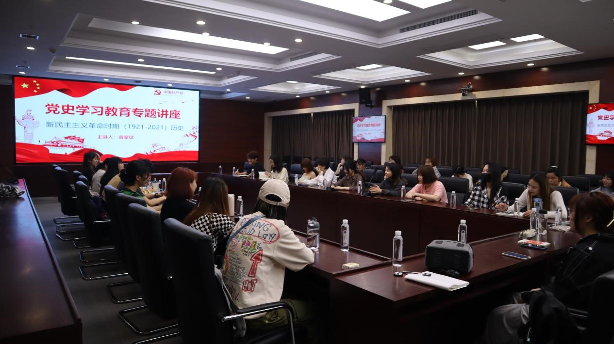 为进一步贯彻落实《领导干部深入基层联系学生工作方案》,加强师生交流学习,贯彻党史学习的深刻意义,牢记初心使命,5月14日上午,信息化处袁家斌处长为1019101班同学开展专题讲座——新民主主义革命时期历史。讲座由人文学院辅导员聂小芳主持,1019101班全体同学参加。