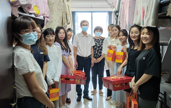 院领导先后走访了南区35栋、36栋研究生宿舍,向留校的学生们转达了学校和学院的关怀慰问。刘虎书记将学校、学院准备的月饼、水果送到学生手中,与同学们畅谈近期的学习生活,了解了同学们在校近况,勉励同学们在疫情期间,要充分利用在校时间,加强和导师之间的沟通交流,制定好未来目标计划,合理安排学习、科研活动。