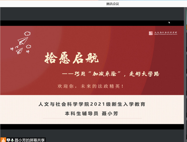 “欢迎你!未来的法政精英”人文学院举行“拾愿启航——巧用’加减乘除’走好大学路”2021级新生公开月讲评