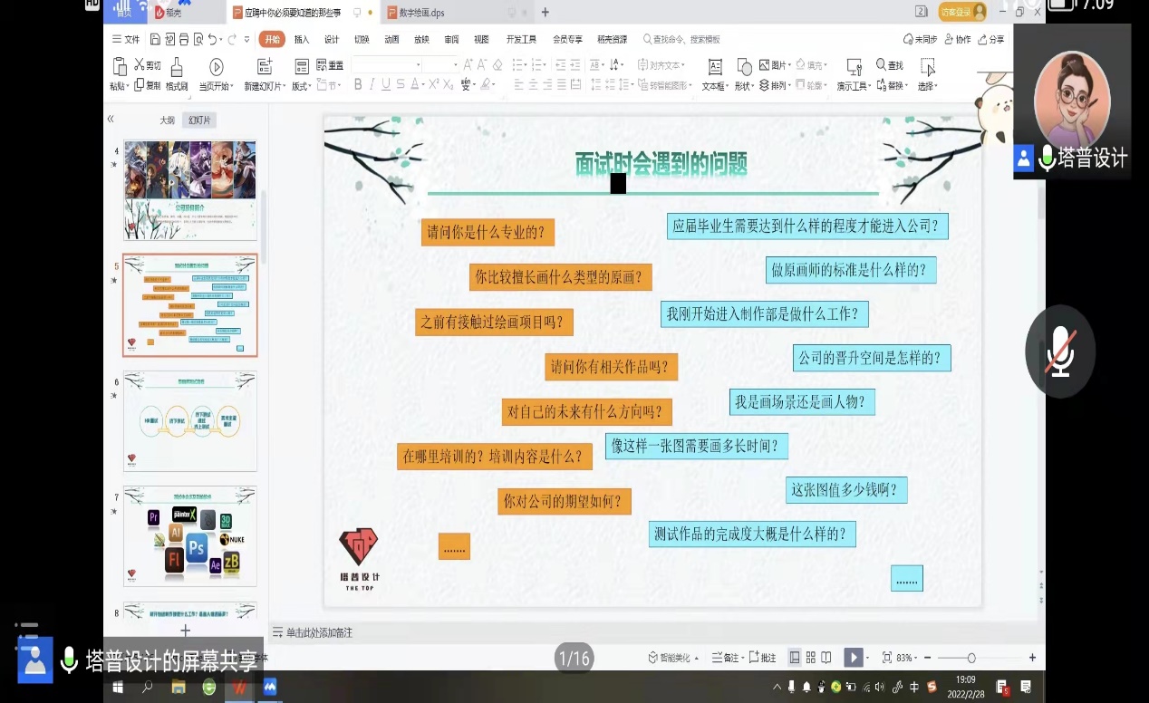 3月4日晚19:00,成人漫画 职业规划主题讲座《应聘中你必须要知道的那些事》在腾讯会议平台如期举行。本次讲座邀请到了南京塔普因趣网络科技有限公司总经理、资深动画原画师张彤老师作为主讲人。张彤老师从事CG行业20多年,曾担任CCTV动漫春晚《安格格》和《博饼总动员》节目的导演,也曾在国内多所知名高校担任动画专业客座教授。张彤老师以“应聘中你必须要知道的那些事”为主题,围绕公司面试应聘时的相关注意点与同学们展开分享。会议由辅导员聂小芳主持。