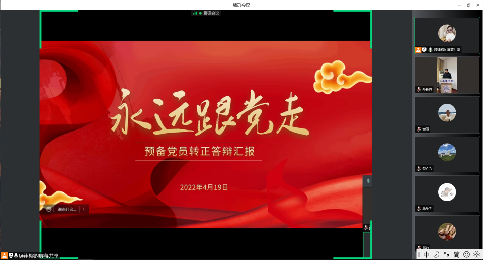 为进一步规范党员发展程序,增强党员发展公信度,提高党员发展质量, 2022年4月19日下午,学院在210会议室召开了预备党员转正答辩汇报会。为严格落实疫情防控要求,本次会议采用线上评审的方式进行。院党委书记楚广兴,院党委副书记刘思辰,公共管理系主任、学生党总支委员沈广和,法律系党支部书记郭莉,院教学办主任、学生党总支委员马驰飞,组织员、学生党总支委员谢丽出席了答辩评审汇报会,2021级各硕士党支部书记列席了答辩会,会议由研究生辅导员孙长胜主持。