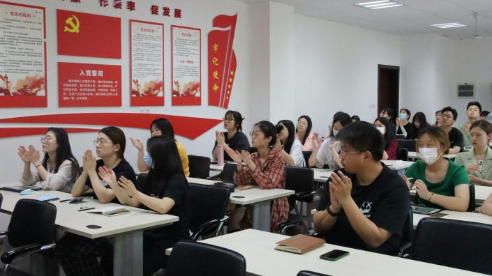 随后,楚广兴作了题为“当代大学生的历史使命与时代担当”的专题党课,带领大家回顾了新中国建国73年以来的历史进程,从这段厚重的历史中总结出了中国共产党执政的经验启示。通过讲述当代大学生的历史使命,他对同学们寄予了深切的期望,希望同学们能进一步学习贯彻习近平总书记在中国人民大学考察时的重要讲话与在庆祝中国共青团成立100周年大会上的讲话精神,传承红色基因、追逐蓝色梦想,牢记初心使命、把握正确方向,将推进党的事业作为理想,融入人文学子的情怀,肩负起青年学生的责任和担当。(文:黄嘉乐、施俞辛;图:黄嘉乐)