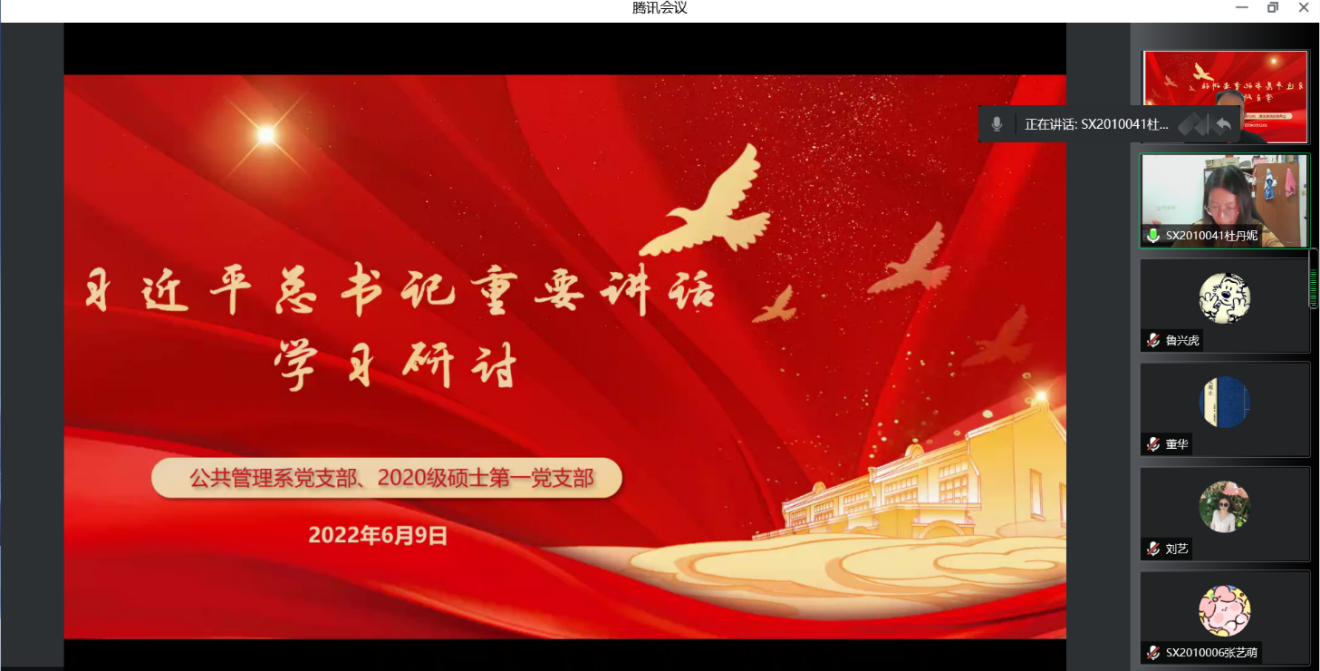 6月9日晚,成人漫画 公共管理系教工党支部与学生2020级硕士第一党支部开展联合学习,专题学习了习近平总书记近期重要讲话精神。公共管理系党支部全体党员,2020级硕士第一党支部全体党员、发展对象、积极分子参加了会议。会议由公共管理系党支部书记许汉泽主持。