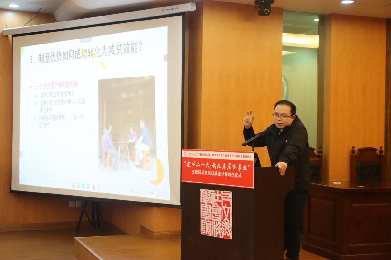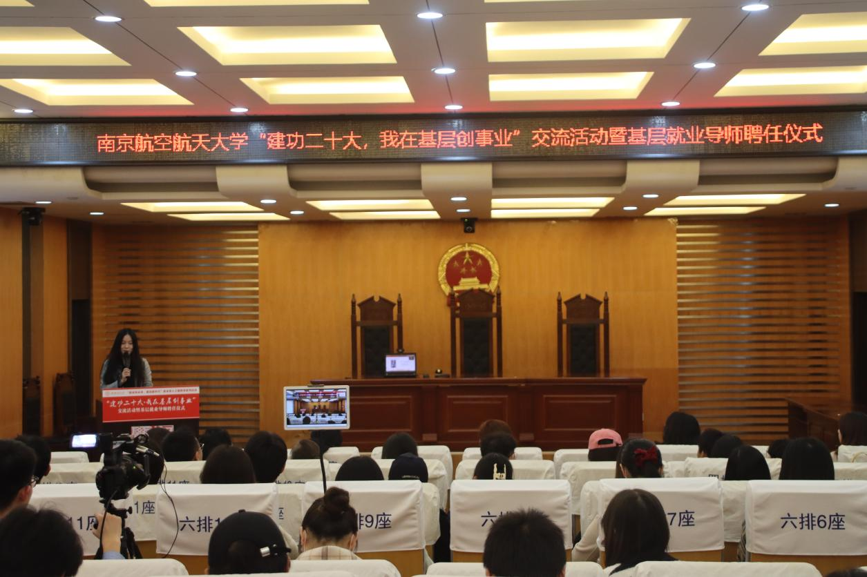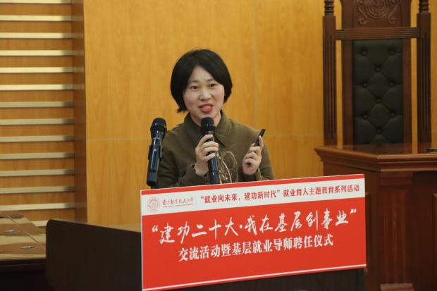 11月18日下午,由校大学生就业创业指导服务中心主办,成人漫画 承办的“建功二十大·我在基层创事业”交流活动暨基层就业导师聘任仪式在成人漫画 模拟法庭顺利开展。(作者:聂小芳;供图:胡梦兰)