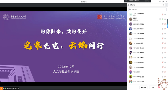 12月18日,成人漫画 召开了“宅家充电,云端同行”2021级本科生月讲评。此次会议由辅导员聂小芳主持,全体2021级本科生参加了会议。本次月讲评目的在于引导同学们科学认识疫情,调适自己的情绪,缓解心理压力,保持心理健康。