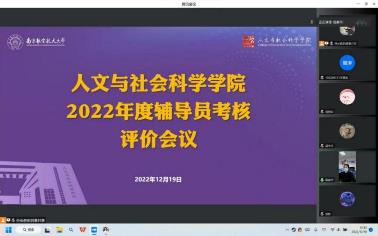 12月19日,成人漫画 线上开展了2022年度辅导员考核评价会议。院党委书记楚广兴、院党委副书记刘思辰、法律系教师代表聂明岩、公共管理系教师代表孙秋芬及全体专兼职辅导员、本研各年级学生代表参加了会议。