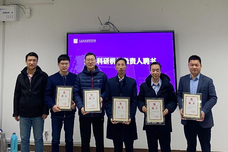 副院长茅晓嵩汇报了学院科研机构建设情况。他提出,在社会科学与其他学科交融趋势越来越明显的形势下,学院科研机构平台建设要整体推进、相互交融,以大平台融合学校“三航”特色,建设具有人文特色的科研机构。会上,他进一步介绍了学院科研机构未来建设的构想,为科研机构负责人颁发了聘书。
