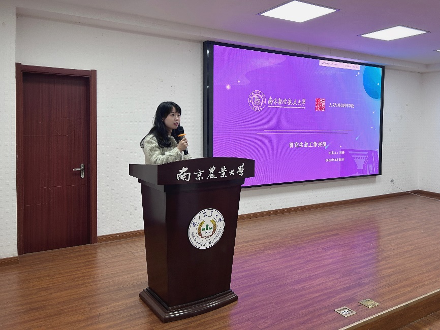 活动在南京农业大学研究生报告厅举行。成人漫画 研究生会主席团成员冯妍首先进行了工作汇报,她从“务实拓新、打造人文品牌”“思想引领、凝聚青年力量”“多元精进、驱动交叉学习”“活力人文、抒写青春洋溢”“维权实践、关爱拾愿身心”“价值宣扬、传播多彩之音”六个方面对研会日常工作和特色活动做了分享。随后,其他学院研会代表也结合各自的工作经验与特色做了汇报分享。