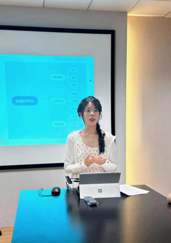 陈蓉从确定目标、调整心态和充分准备三个维度为同学们分享了保研的心路历程和个人经验,提出要有针对性的选择夏令营,做好充分准备;陈佳瑶结合“积攒”+“推销”的保研公式,从个人定位出发,向大家介绍了保研定位的方式以及如何在面试中展现最大优势;阮其乐同学结合自身经历介绍保研夏令营中的相关注意事项,提醒同学们注意不同院校的入营资格、学校偏好、考查要点等内容。