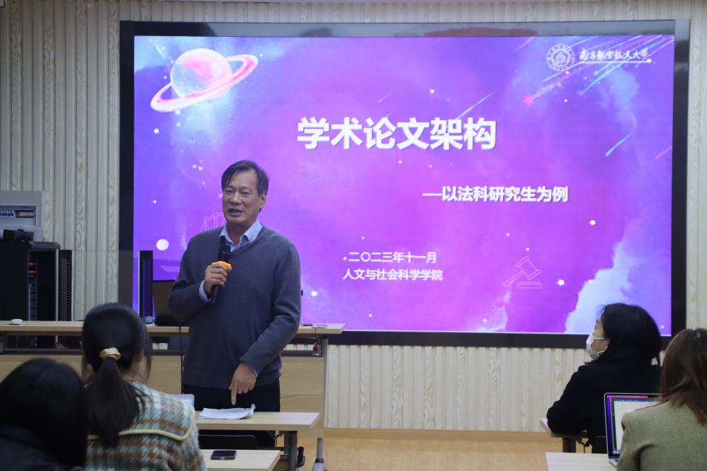 11月12日下午,成人漫画 面向本研各年级学生开展“学术论文架构”专题讲座,学院法律系教授马荣春就“如何写好学术论文”与学生进行交流。讲座由本科生辅导员聂小芳主持。