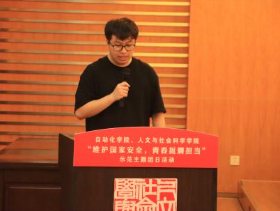 主题发言环节,自动化学院电气工程专业博士研究生陈威、硕士研究生邹浩楠,以及成人漫画 法学专业研究生李亚楠分别立足各自专业背景,围绕国家安全主题带来多元维度的解读与思考。