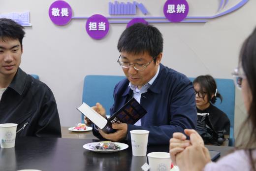 楚广兴分享了自己的阅读经历和阅读习惯,鼓励同学们在研读专业书籍之余,按自己的兴趣和需求好读书、读好书,带着问题、以探索的姿态去阅读,加深对书籍的理解,汲取书籍中蕴含的智慧。他介绍了自己最近阅读的书籍,并为大家推荐了一些经典好书,鼓励同学们主动思考、积极交流,在阅读中坚持学习、不断成长。