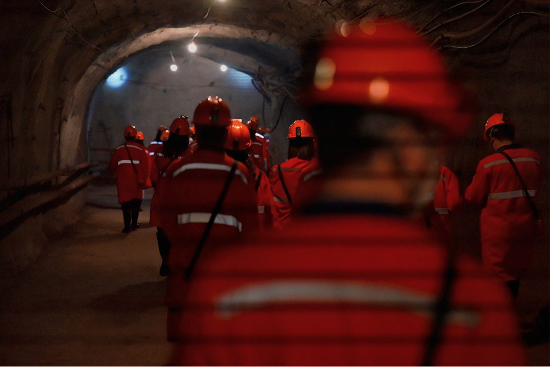 27日上午,师生一行在梅山钢铁集团矿业公司相关人员陪同下深入矿井进行考察。梅山钢铁集团组织部(人力资源部)部长、我校社会工作硕士专业行业导师苏潜博士介绍了梅山钢铁的艰苦创业历程以及发展情况,并带领大家学习了下井安全教育注意事项。随后,学院师生有序乘坐罐笼下降至井下420米深处的采矿生产区进行实地考察,现场感受企业的生产环境、先进设备以及安全管理制度建设。