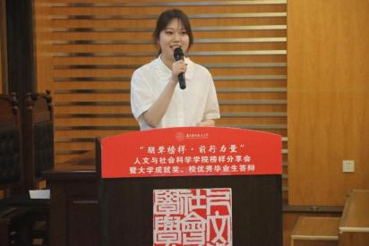 活动分为三个篇章,第一篇章“逐梦:不负韶华,以拼搏凝聚力量”,参与大学成就奖、校优秀毕业生答辩的候选人航空工业奖学金获得者、2020级政治学与行政学专业本科生鲁浩翔,国家奖学金获得者、2020级法学专业本科生王思捷,年度特别嘉奖获得者、2020级法学专业本科生李欣怡三位同学依次发言,分享在学院的四年成长经历以及未来的发展规划,透过他们的分享,四年逐梦痕迹清晰可见,为台下的学弟学妹们播下了梦想的种子。