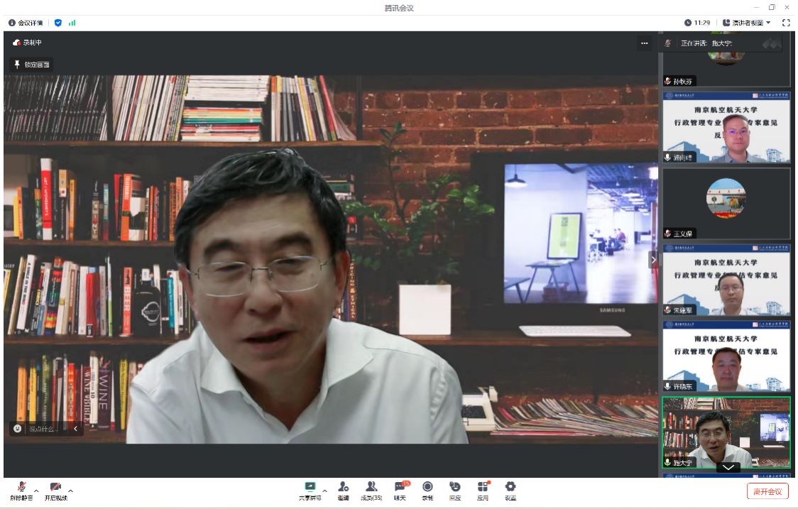最后,朱建军提出,希望行政管理专业按照专家的意见,制定三至五年的发展规划,努力争取南航新文科的专业认证。邓晶建议行政管理专业在自评估后认真做好梳理,教务处将做好各项保障工作,积极给予学院支持。