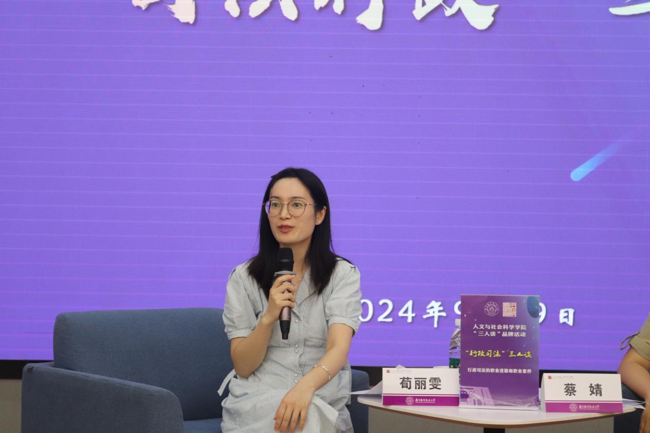929日下午,成人漫画 在天目湖校区巡天楼二楼报告厅举行职业规划“司法行政三人谈”品牌活动。溧阳市司法局复议应诉科科长荀丽雯溧阳市司法局政治处主任蔡靖作为嘉宾参加活动活动学院党委副书记刘思辰主持。