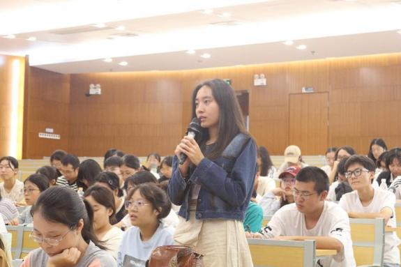 在现场互动环节,同学们踊跃举手提问,现场气氛热烈,两位嘉宾从阅读推荐到实习实践,详细地为同学们答疑解惑。
