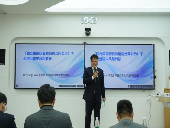 专题报告单元由孙汉基副教授主持。韩国岭南大学法学院院长徐辅建教授就《航空航天法律体系的公法课题》阐释韩国航天情况、指出问题并提完善措施;汉阳大学法学院郑镐庚教授围绕韩国航天局相关主题介绍其法律规则及探讨航天法律教学问题;岭南大学法学院李晟愿教授针对航空运输风险转移问题从公约视角提供新思路;日本中京大学法学院张荣红副教授介绍日本低空经济现状并阐释其法律制度特点,为我国提供经验借鉴。