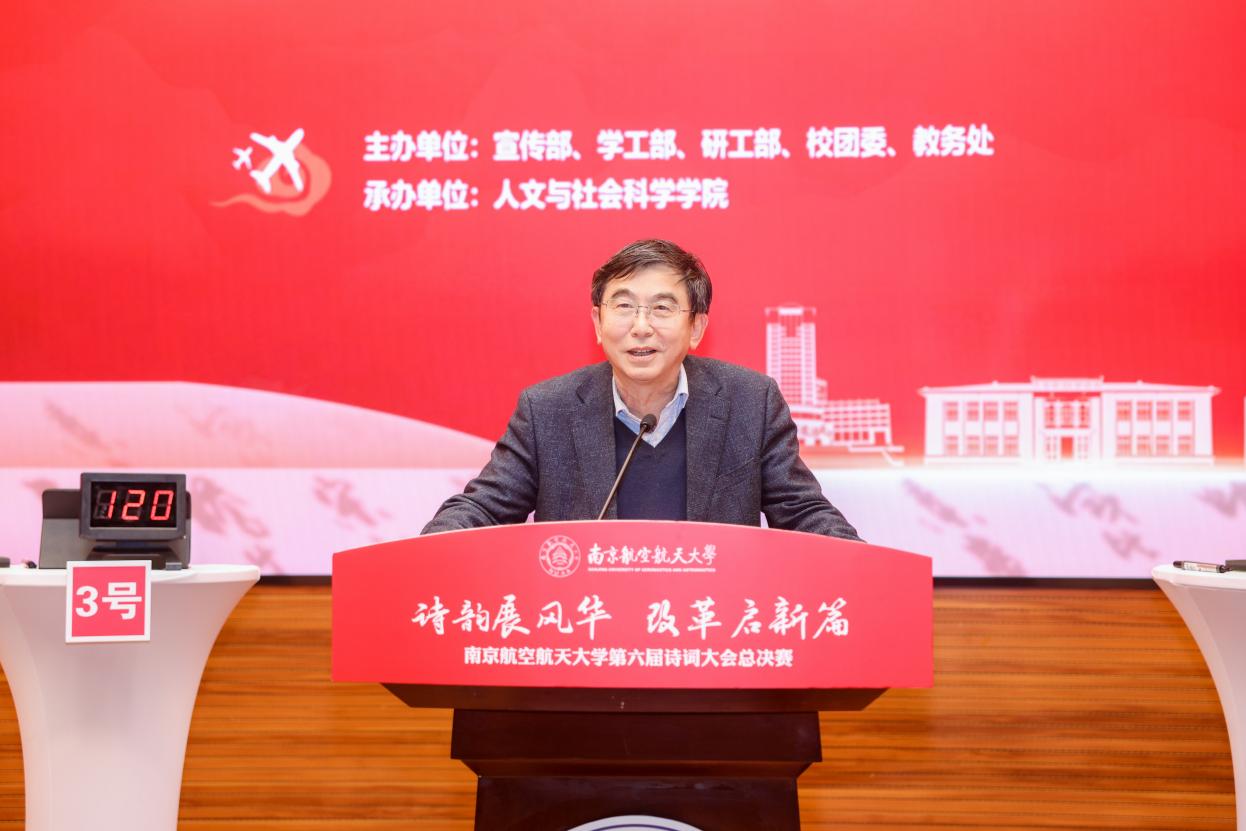 124日晚,“诗韵展风华,改革启新篇”成人漫画 第六届诗词大会总决赛在将军路校区1号楼4楼报告厅成功举办。副校长施大宁,全国人大代表、江苏卫视新闻主播张晓北,2011届校友、2023中国诗词大会总冠军、中国南方航空股份有限公司飞行总队飞行教员马保利,南京师范大学文学院教师陶慧,2023届校友、沈阳飞机工业(集团)有限公司工艺员第四届南航诗词大会榜眼谷建霖出席活动。
