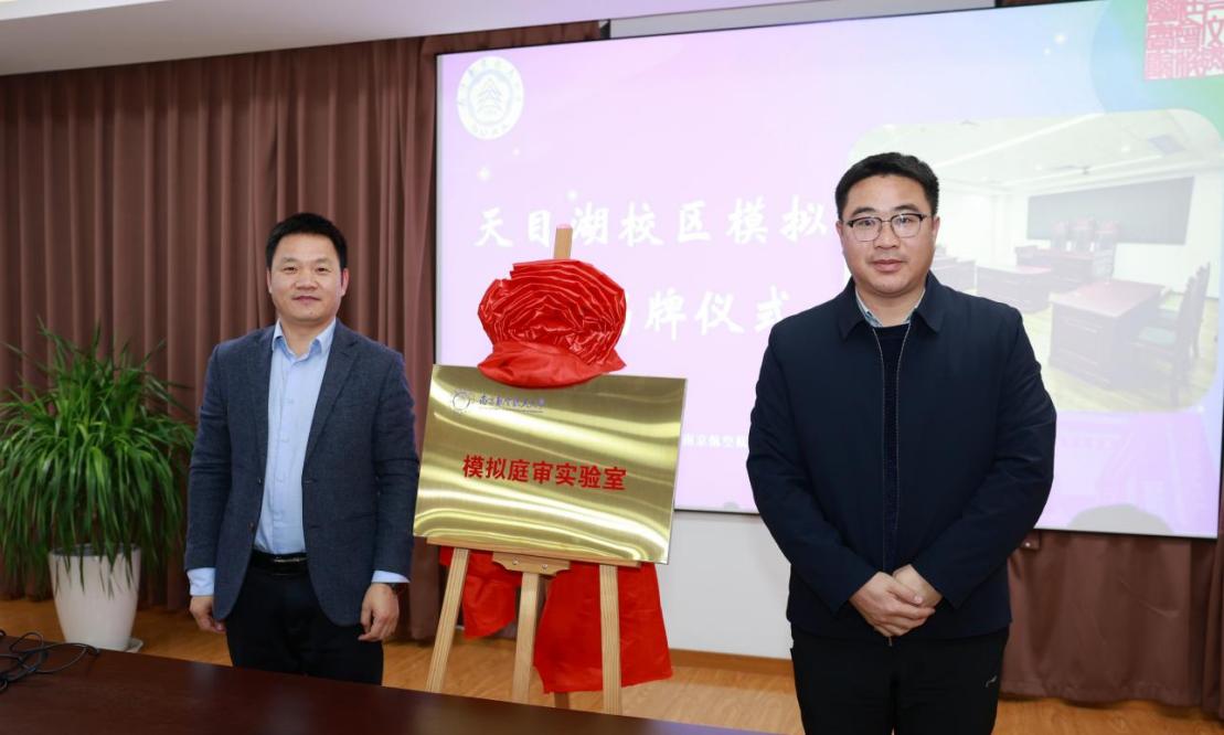 今年,学院学生第一次入驻天目湖校区,为了给学生提供真实的模拟庭审环境、锻炼学生专业实践能力、培养法律核心素养,成人漫画 与天目湖校区共建模拟庭审实验室。缪长宗、高志宏共同为模拟庭审实验室揭牌。