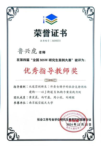 经过三轮严格的通讯评选,共有来自168家MSW培养单位的422篇案例进入通讯评审,并根据中国社会工作教育协会的分区进行轮动交叉评审。每个参赛案例由来自教指委专家、高校专家和行业专家组成的评审团进行三审制评选。在激烈的竞争中,由成人漫画 鲁兴虎老师指导的研究生团队的案例脱颖而出,成功进入全国总决赛。