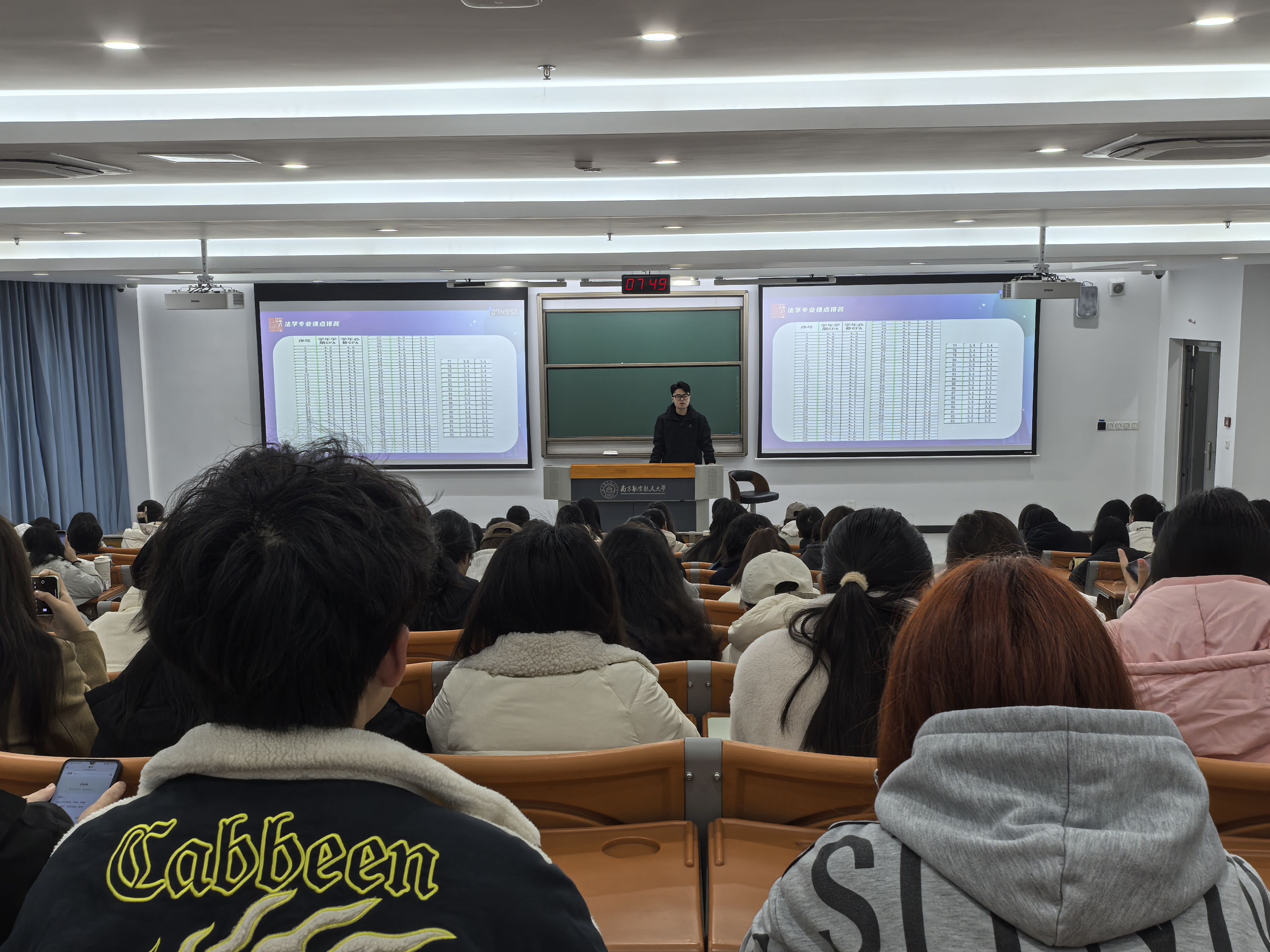 本次年级会聚焦良好学风培育与安全意识强化两大主题,旨在引导学生明确新学期学业目标、培育安全意识,为新学期学习生活奠定良好开端。安洪文首先分析了2024级本科生秋季学期整体学业表现情况,鼓励同学们要补短板、争上游,在新学期学习中取得更大进步。
