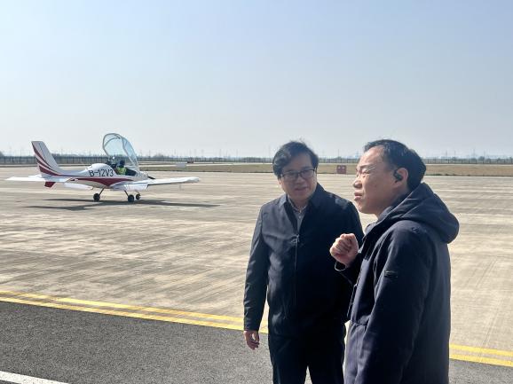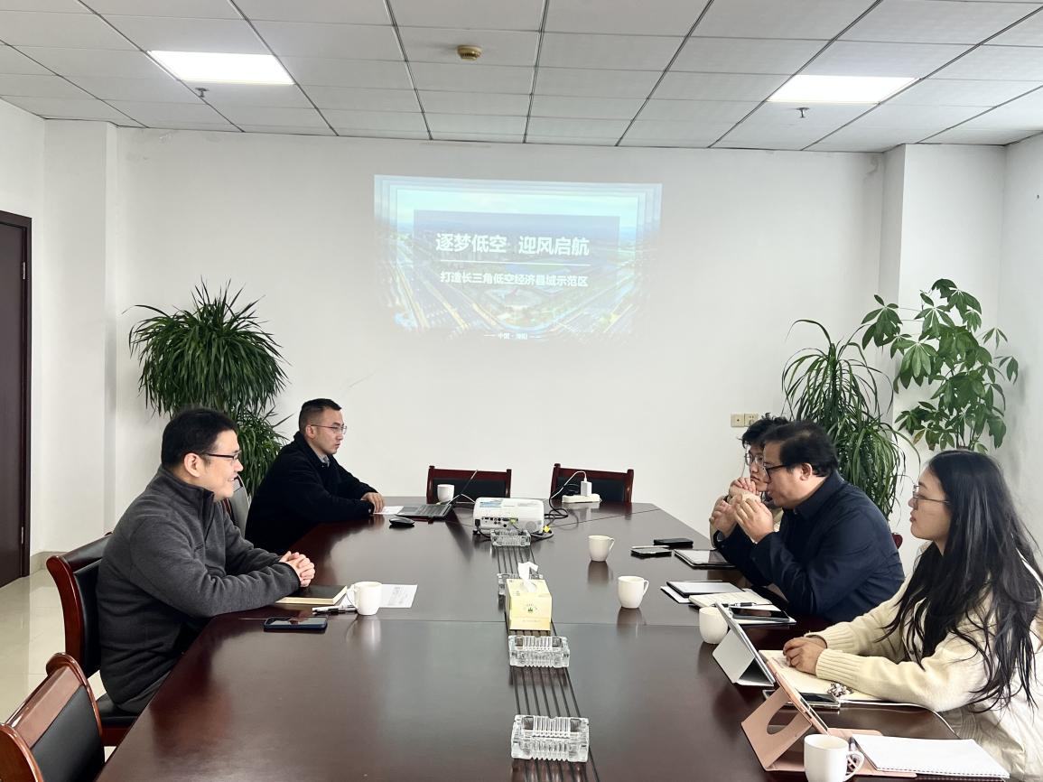 在别桥镇政府相关负责人的带领下,调研团队先后走访了溧阳长荡湖通用机场、别桥镇低空经济创业中心,重点调研了两家具有代表性的无人机企业——江苏星睿航空科技有限公司、江苏云博智能科技有限公司。通过实地考察和深入交流,团队了解到小镇当前无人机技术研发、产品创新以及市场开拓等方面的最新进展。