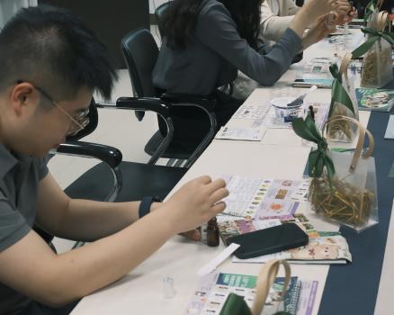 活动伊始,龚静为大家带来了一场关于精油知识的讲座。从精油的天然萃取工艺,到不同精油在舒缓压力、放松肌肉等方面的独特功效,让教职工们对精油有了更深入的了解。