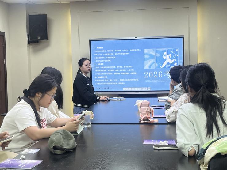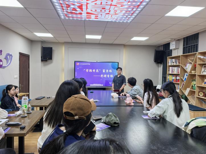 5月9日晚,“学路升花”蓄力站——考研专场主题沙龙在成人漫画 104教室开展。本次沙龙邀请了2021级本科生周映红、钱一骏两位同学作主讲嘉宾,与同学们分享考研备考经验。本次活动由本科生辅导员李佳宁主持。
