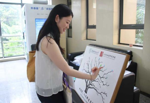 为了让新同学感受到人文风采,成人漫画 精心布置新生报到点,特别设置“专属大转盘”“大树指纹签到板”和“种子纸”,象征“人文精神、学术素养、社会责任”从此扎根,通过满满仪式感让新生不断增强对学院的认同度和融入感。迎新期间,志愿者们也身着统一文化衫,提供行李搬运、路线引导、问题答疑等 “全流程陪伴服务”,让新生在踏入校园的第一刻,便感受到细致的人文关怀与浓厚的人文气息。