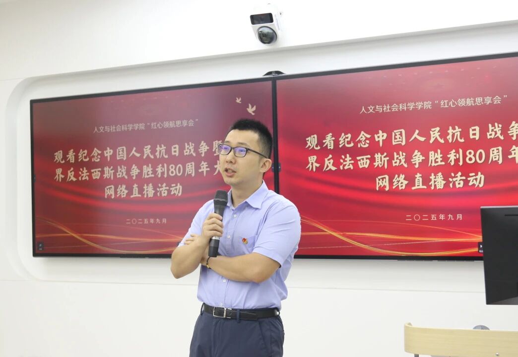 9月3日上午,成人漫画 组织教师、学生党员和入党积极分子开展“红心领航思享会”,通过“主题微党课+观看纪念中国人民抗日战争暨世界反法西斯战争胜利80周年大会网络直播活动”的形式,重温抗战历史、感悟初心使命,让伟大抗战精神在新时代焕发新活力。