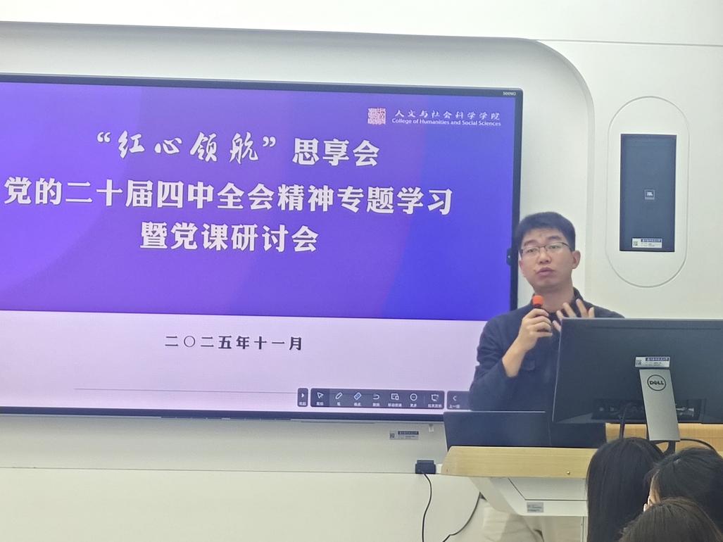 在213教室开展“党的二十届四中全会精神专题学习暨党课研讨”红心领航思享会,邀请马克思主义学院讲师、思政专员陈启超担任主讲嘉宾,特邀电子信息工程学院光电融合研究生党支部书记袁振涛、成人漫画
